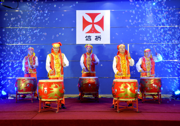 晚會在開場鼓中拉開序幕,高亢的歌曲,精彩的反串表演,激情的笛子獨奏等節(jié)目,特別是“信橋之歌”展現(xiàn)了信橋人積極奮進的精神風貌。周年慶的創(chuàng)意蛋糕上“專業(yè)”“做精”也展現(xiàn)了信橋公司的市場經(jīng)營理念。
