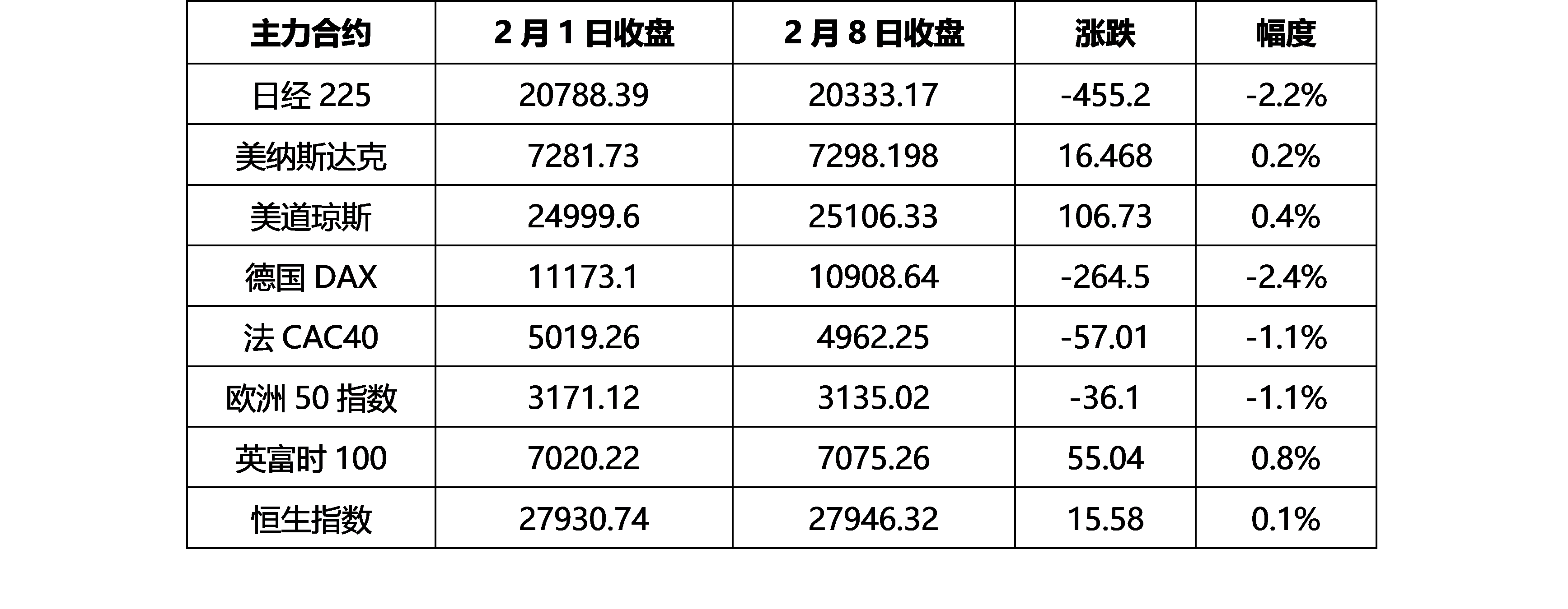 春節(jié)期間全球主要股指變動對比