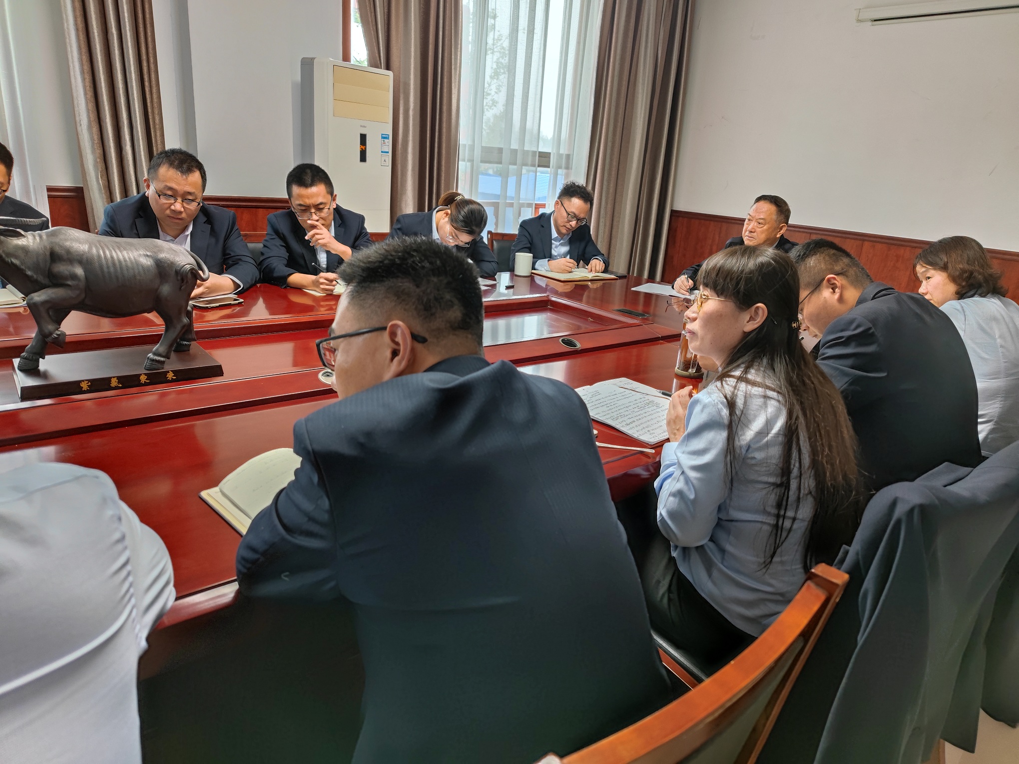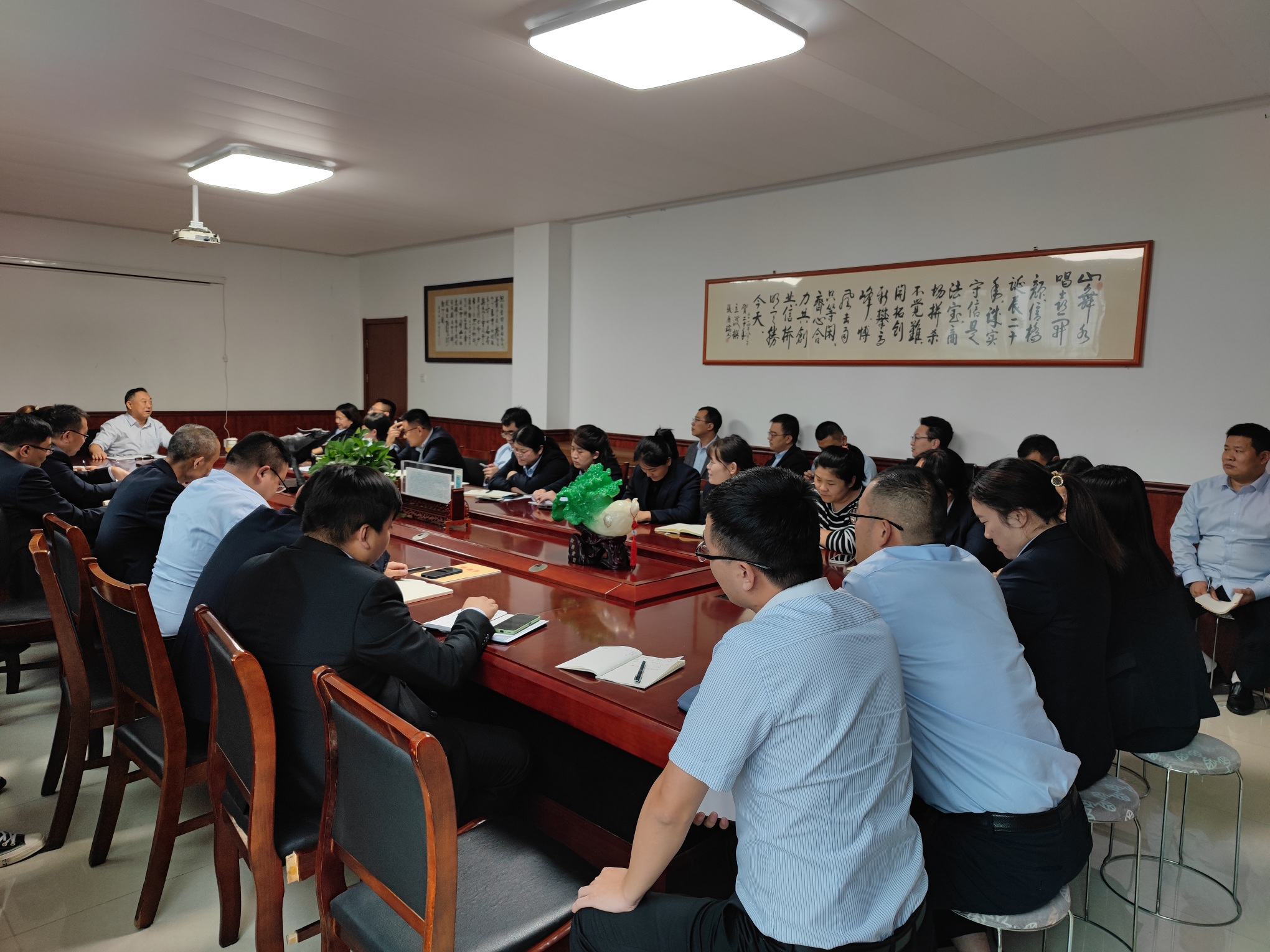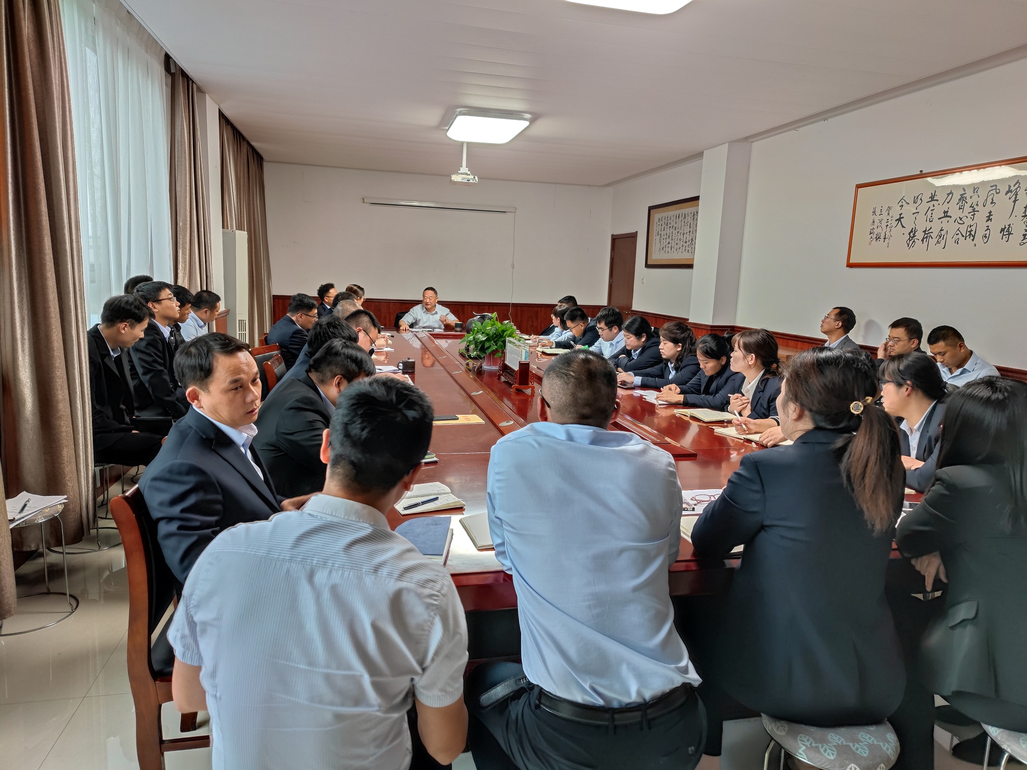 2021, Shandong Xinqiao Industrial Staff in the Manzhuang head office conference room at the start of the annual business conference. The meeting is divided into three parts: